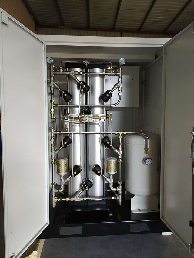 2. 結(jié)構(gòu)緊湊,占地少:PSA制氮設(shè)備設(shè)計緊湊,集成度高,能夠在較小的空間內(nèi)完成整個制氮過程,這不僅減少了設(shè)備安裝所需的場地面積,也便于移動和維護,特別適合于空間有限或需要靈活布置的應(yīng)用場景。